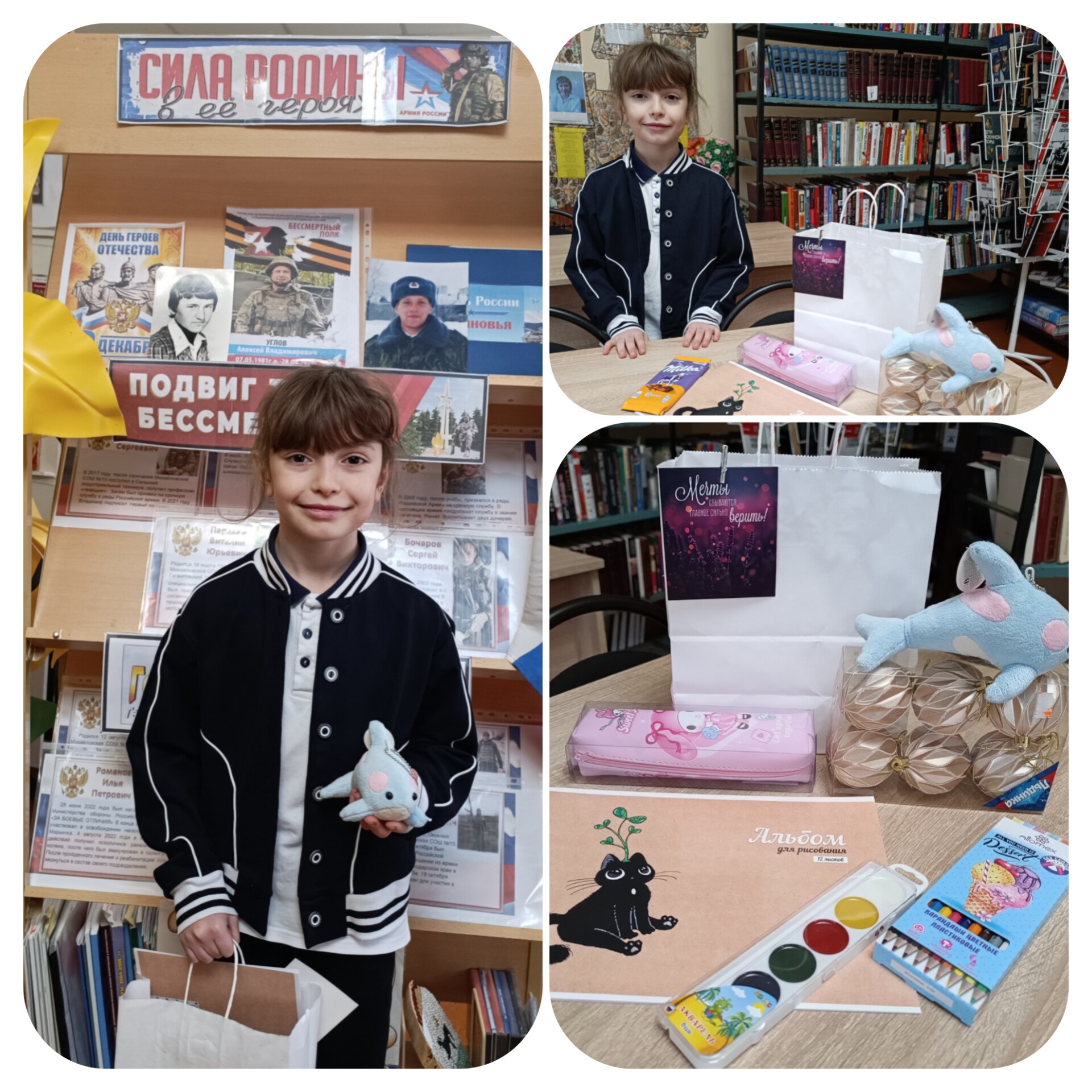 Все с нетерпением ждут Новый год — время, когда мечты сбываются . Новый год- пора подарков и сюрпризов, которые ждут и взрослые и дети. Получать подарки очень волнительно, а дарить их во многие разы радостнее. Сегодня, нашу библиотеку посетила младшая дочь героя-земляка Углова Алексея Владимировича, героически погибшего в СВО, Валентина, учащаяся 2 класса МБОУ Михайловкая СОШ№15, которой заведующий «СП «Библиотека с. Михайловка» МБУК ЦР МЦБ Шишкина И.И. подарила небольшой новогодний подарок.