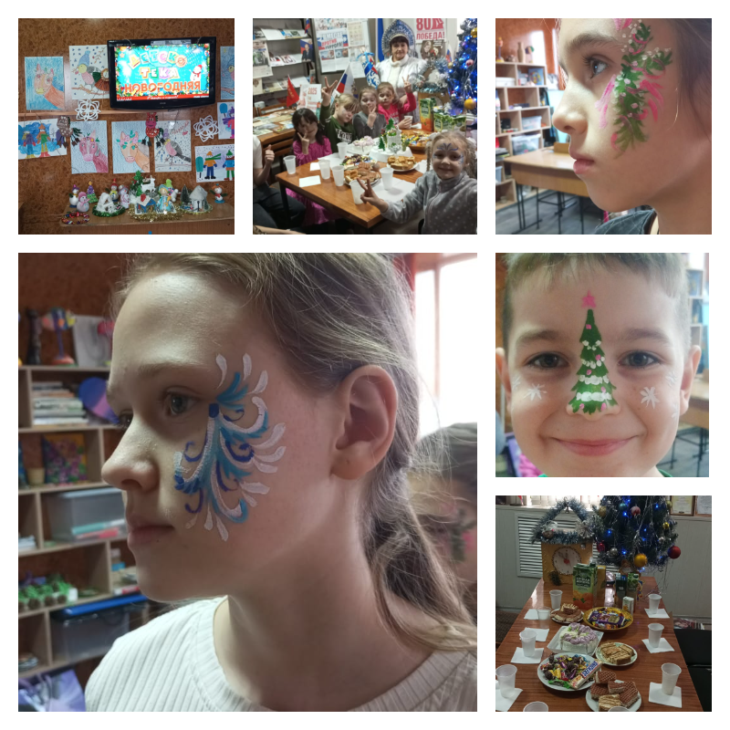 Дед Мороз трудится не покладая рук. Сегодня 22 декабря в библиотеке ст. Сладкая Балка работа кипела. Пришли ребята и подготовили чудесную выставку новогодних рисунков и поделок. Здесь были и символ Нового года-лошадки, снеговики и сказочные домики. На лицах ребят появились красивые зимние узоры: котята, зайчата. Аквагрим выполнила преподаватель Журавлева И.П.