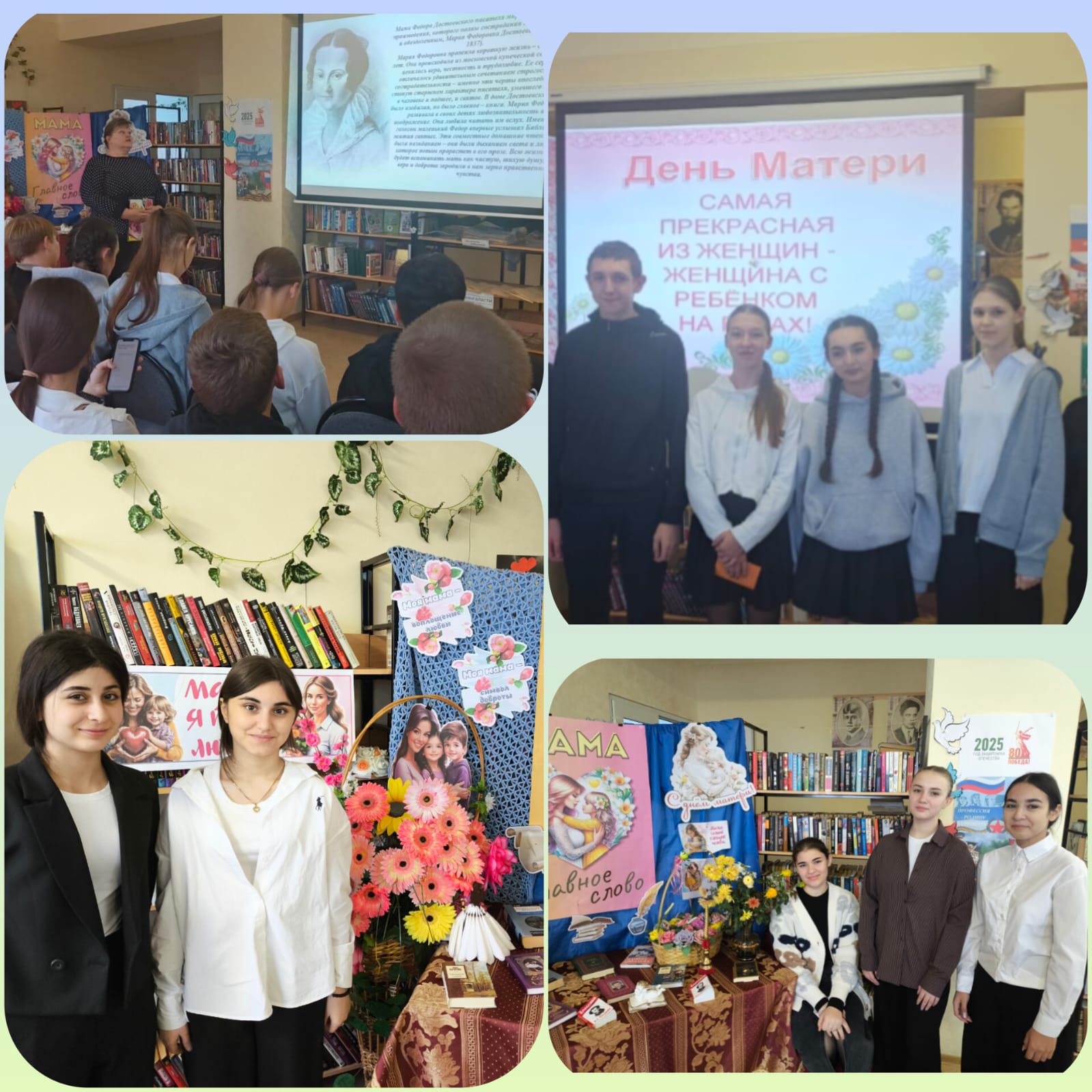 Мероприятие прошло рамках проекта Пушкинская карта. Основной частью мероприятия стала литературная гостиная, где участники читали стихи о маме, делились теплыми воспоминаниями и рассказывали о своих мамах. Обсуждали о роли матери в жизни и в литературе, ярких образов матерей, а литературе: образ Нины из «Чайки» А. П. Чехова, Глафиры из «Обломова» И. А. Гончарова, чтение стихотворений о матери А. Ахматовой, С. Есенина, М. Цветаевой.