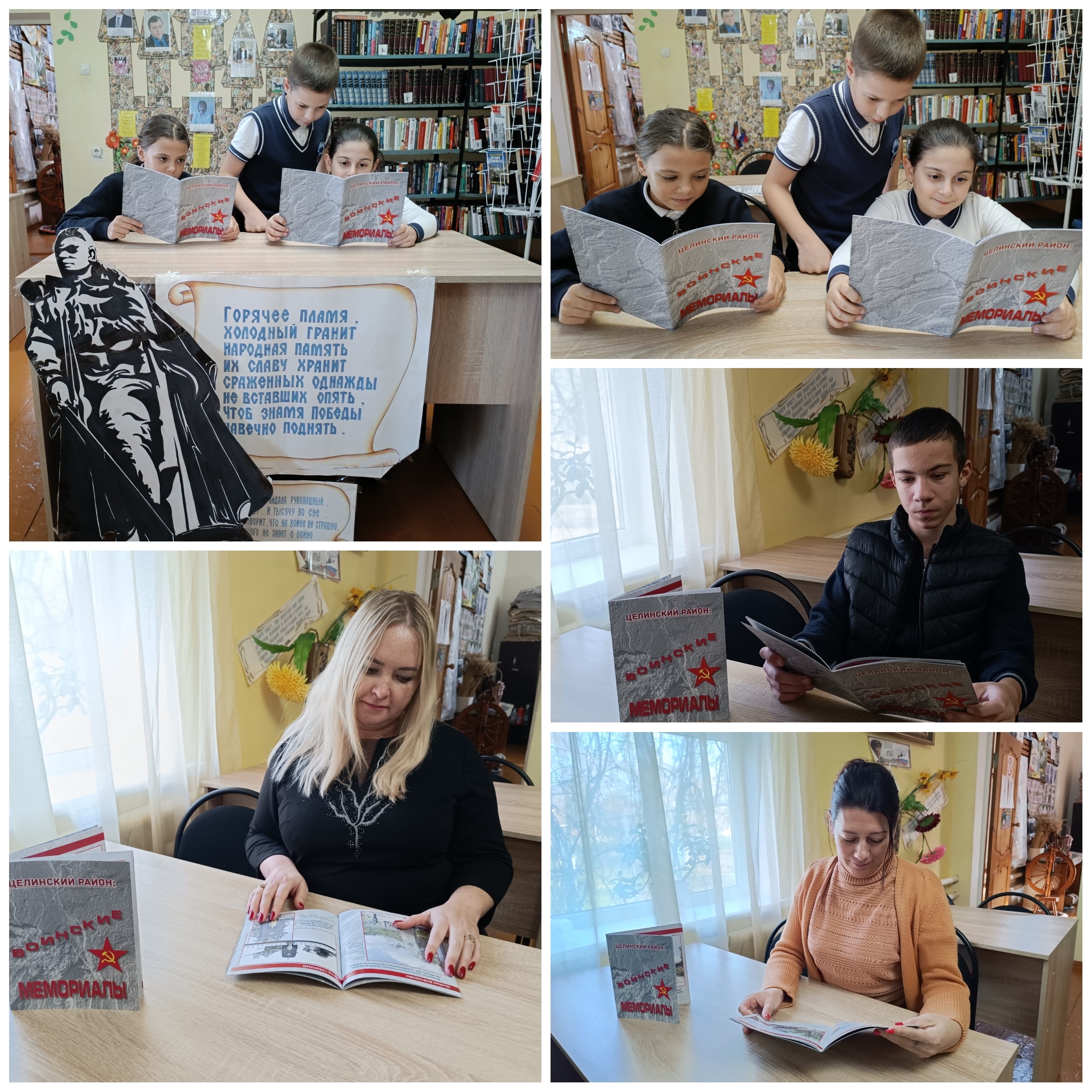 Сегодня, в СП "Библиотека с. Михайловка" МБУК ЦР МЦБ, состоялась презентация брошюры "Целинский район: воинские мемориалы". Над изданием работали: Толмасова Р.И. , член Союза журналистов России, Афанасьев Ю.Н., заведующий ОК Администрации ЦР, Суркова М.Л., заведующий Музеем истории ЦР, Тимохина И.А., директор- гл. редактор ООО"Дельта". Документальную информацию и фотоматериалы для издания представлены Советом ветеранов ЦР и администрациями сельских поселений.