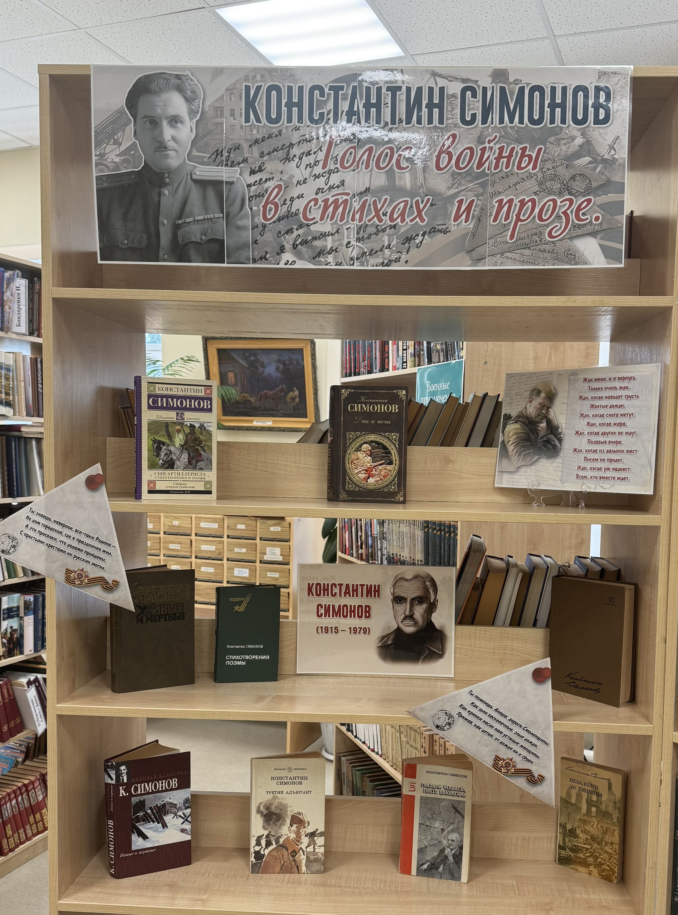 В Межпоселенческой центральной библиотеке оформлена книжная выставка Константину Симонову «Голос войны в стихах и прозе». 28 ноября 2025 года исполняется 110 лет со дня рождения. Выдающийся советский писатель, поэт, драматург и журналист, чье творчество неразрывно связано с темой Великой Отечественной войны.