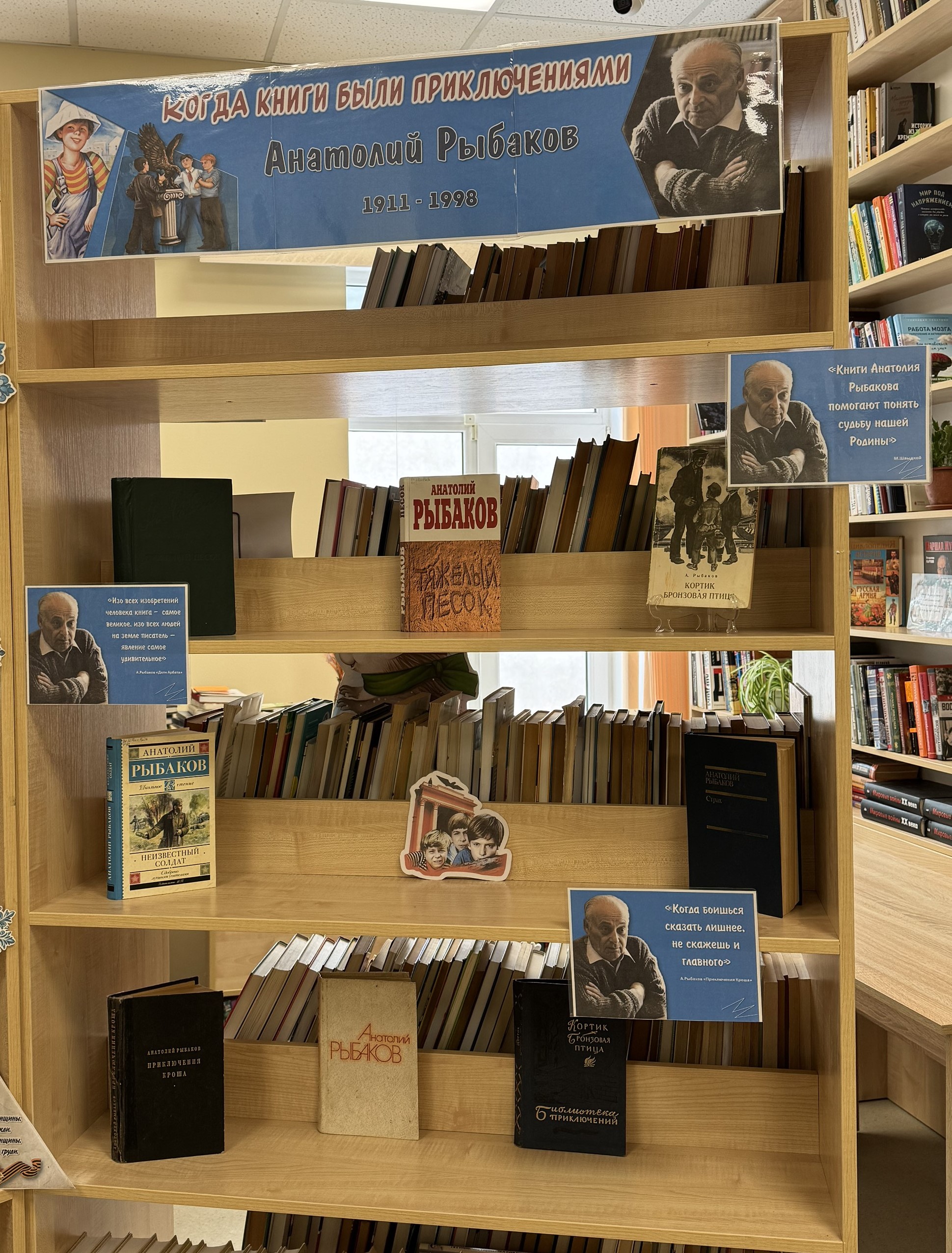 14 января 2026 года исполнилось 115 лет со дня рождения выдающегося советского и российского писателя Анатолия Рыбакова. На абонементе Межпоселенческой центральной библиотеки оформлена книжная выставка "Когда книги были приключениями". Книги Анатолия Рыбакова привлекают читателей не только увлекательным сюжетом, но и важными темами: поиском правды, нравственным выбором, силой дружбы и памятью истории. Писатель умел говорить с аудиторией на одном языке — без нравоучений, но с искренним уважением к читателю, благодаря чему его истории остаются живыми, захватывающими и побуждающими к размышлениям.