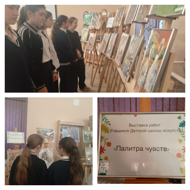 18 ноября учащиеся 6 «А» класса ЦСОШ №1 посетили выставку «Палитра чувств» предоставленную учащимися Детской школы искусств. На выставке представлены работы учащихся школы искусств, выполненные в разных стилях, с душой и большой любовью. Несмотря на то, что работы выполнены в разной манере и отличаются по жанру, они органично собрались в единую палитру и вызвали у ребят искреннее восхищение.