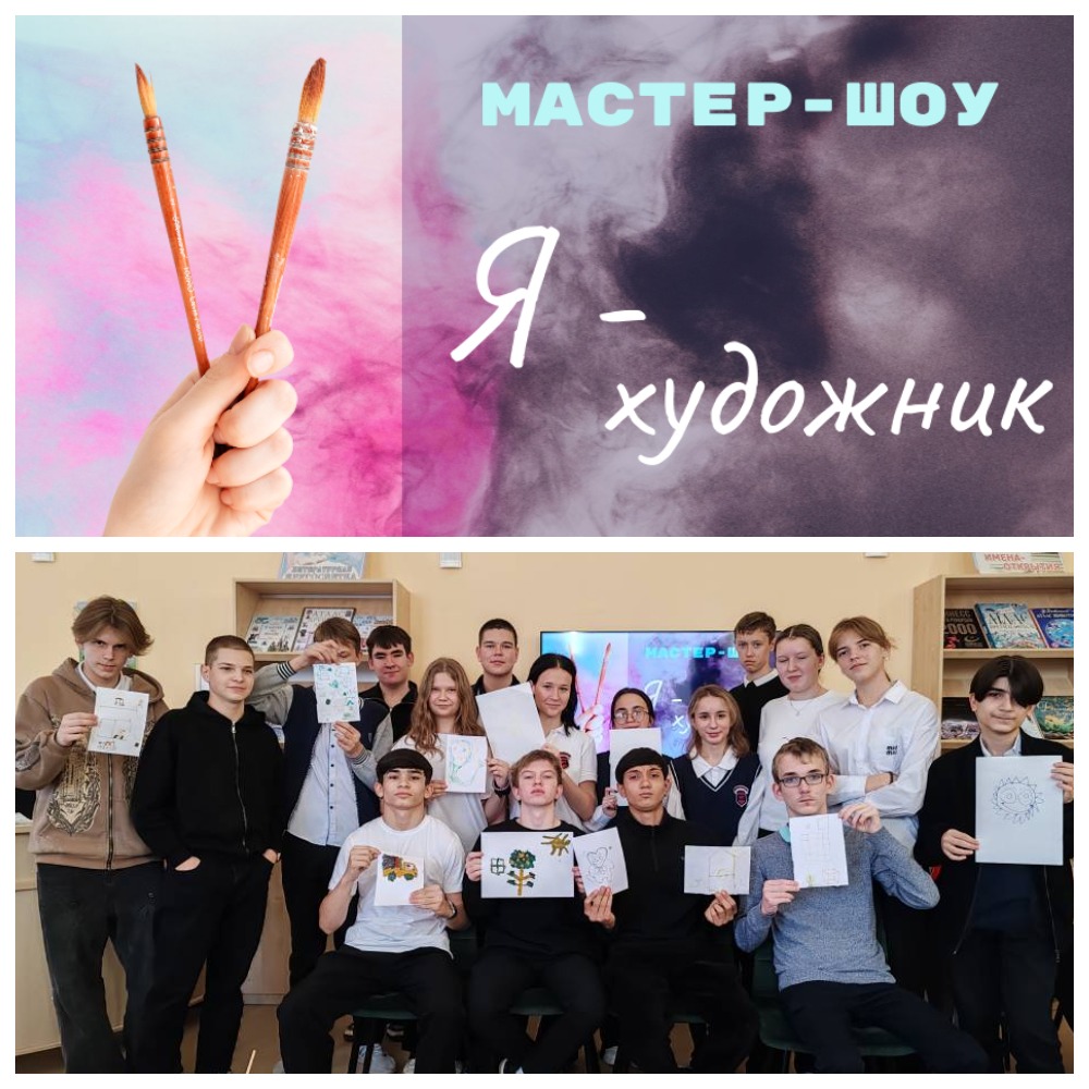 В рамках реализации программы «Пушкинская карта» для учащихся 9 «Б» класса СОШ № 1 в Детской библиотеке 18 ноября было проведено Мастер-шоу «Я — художник». В своей беседе библиотекарь Лебешева О.Н. познакомила ребят с историей возникновения рисунка как способа восприятия мира, оригинальными и необычными техниками рисования. А на практике участники мероприятия смогли испробовать на себе такие способы рисования как тактильный, рисование ногой, пальцами или с закрытыми глазами. Дружно и весело подростки работали в группах: применяя методику дорисовывания фигур, получая содержательные по смыслу «произведения искусства».