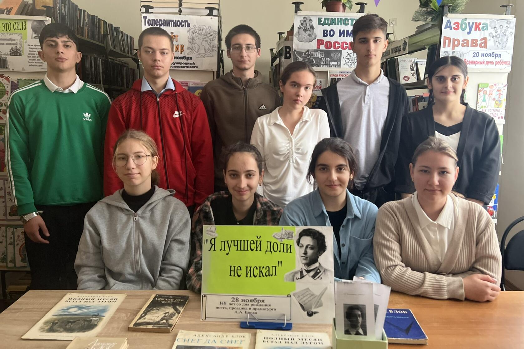 20 ноября в рамках программы «Пушкинская карта» для учащихся старших классов СОШ № 14, в библиотеке с. Степное прошло мероприятие, посвященное 145-летию со дня рождения А.А. Блока (1880-1921). Выдающегося русского поэта Серебряного века, драматурга, критика и переводчика. Учащиеся познакомились с этапами жизни и творчества поэта, с его произведениями, читали всеми известные и любимые стихотворения А. А. Блока.