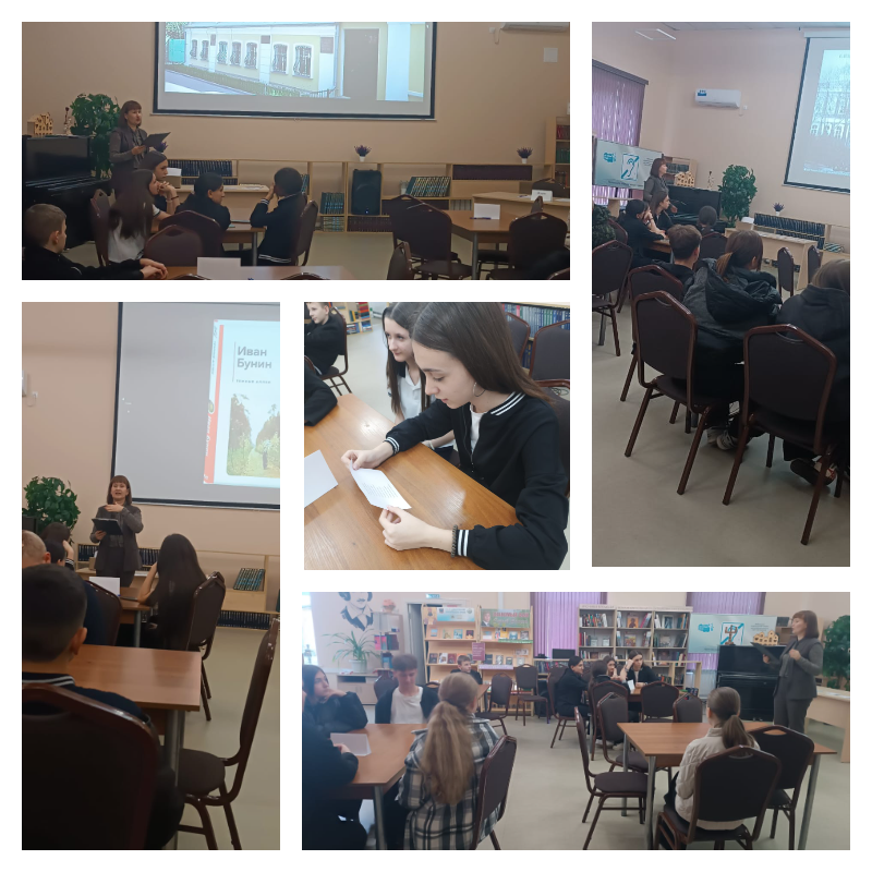 К 155-летию со дня рождения известного русского поэта и писателя, лауреата Нобелевской премии в области литературы Ивана Алексеевича Бунина для учащихся 8-В класса МБОУ ЦСОШ № 1 сотрудниками центральной библиотеки была проведена литературно-музыкальная гостиная «Стихотворная палитра Ивана Бунина». На мероприятии звучали стихи И. Бунина и отрывки из его художественной прозы.