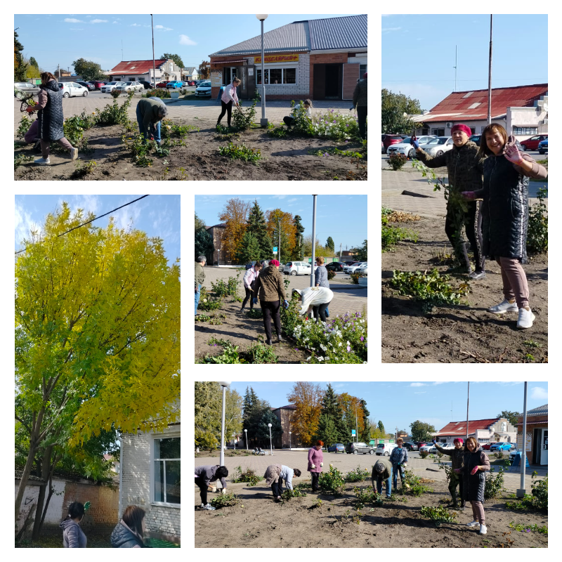 Какая чудесная в этом году осень! Сколько солнечных и теплых дней! А как сейчас ярко и сочно цветут цветы, ведь нет летнего зноя, дождик полил их. Осень — пора, когда нужно подготовиться к долгой и холодной зиме. Поэтому не дожидаясь, пока погода окончательно испортится, коллектив центральной библиотеки вышел на осенний субботник.