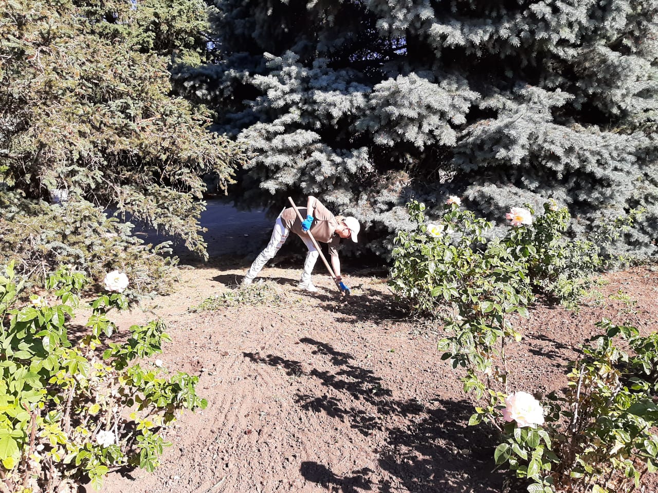 7 июня сотрудники библиотеки, отложив на время привычные обязанности, приняли участие в очередном субботнике по уборке клумбы на площади им. Ленина. Коллеги, объединившись, ловко убирали отцветшие розы и листья, очищали клумбу от мусора, подметали дорожки.
