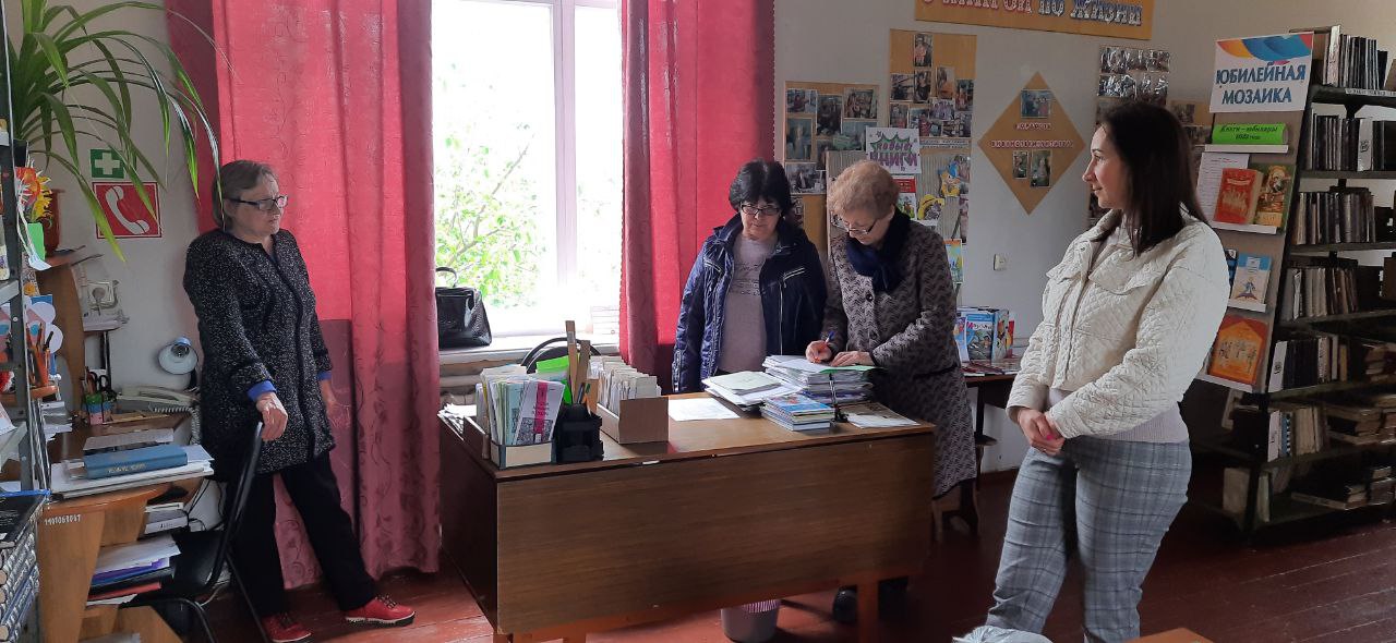19 мая 2022г. сотрудники муниципального бюджетного учреждения культуры Целинского района «Межпоселенческая центральная библиотека» в составе рабочей группы: директор, заведующий методическим отделом, заведующий отделом комплектования и обработки литературы посетили сельские структурные подразделения с. Плодородное, с. Степное, п. Юловский.