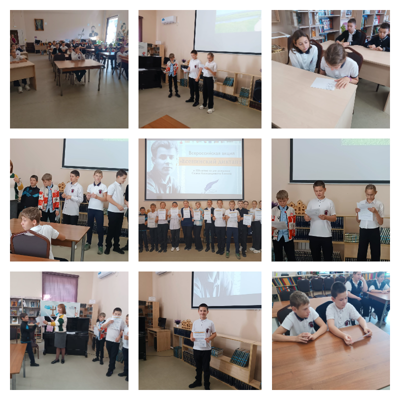Сегодня в Целинской центральной библиотеке состоялось награждение участников Всероссийской акции «Есенинский диктант», приуроченной к 130-летию со дня рождения великого русского поэта Сергея Александровича Есенина. Акция проводилась 23 сентября 2025 года в конференц-зале центральной библиотеки. Диктант проводился в тестовой форме, его задания были ориентированы на проверку знаний по русскому языку и литературе и посвящены творчеству и биографии С.А. Есенина.