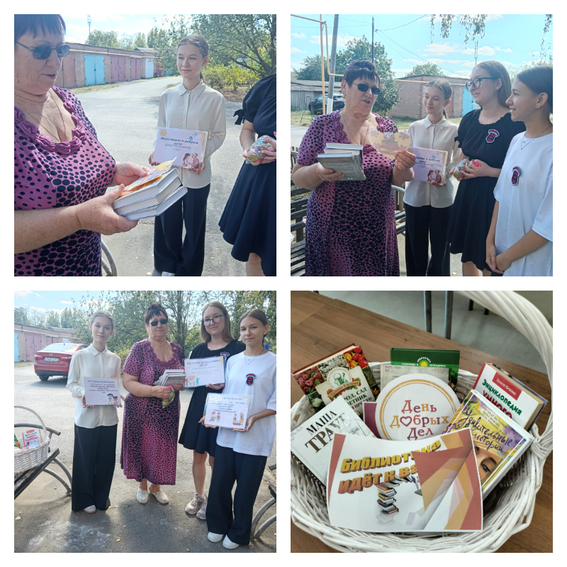 В рамках празднования 6 сентября Дня добрых дел в Ростовской области заведующий библиотекой Шишкина Ирина Ивановна провела акцию «Пусть миром правит доброта». Цель акции– создать и в библиотеке, и за её стенами атмосферу радости, тепла и доброты. В рамках акции «День добрых дел» в течение дня библиотекарь приветствовала каждого читателя с пожеланиями здоровья, добра, мира, улыбок. Каждый читатель получил поделку улыбающееся солнышко- чтобы сегодняшний день был ярким и добрым, сладкую конфету - чтобы день был сладким и интересным.