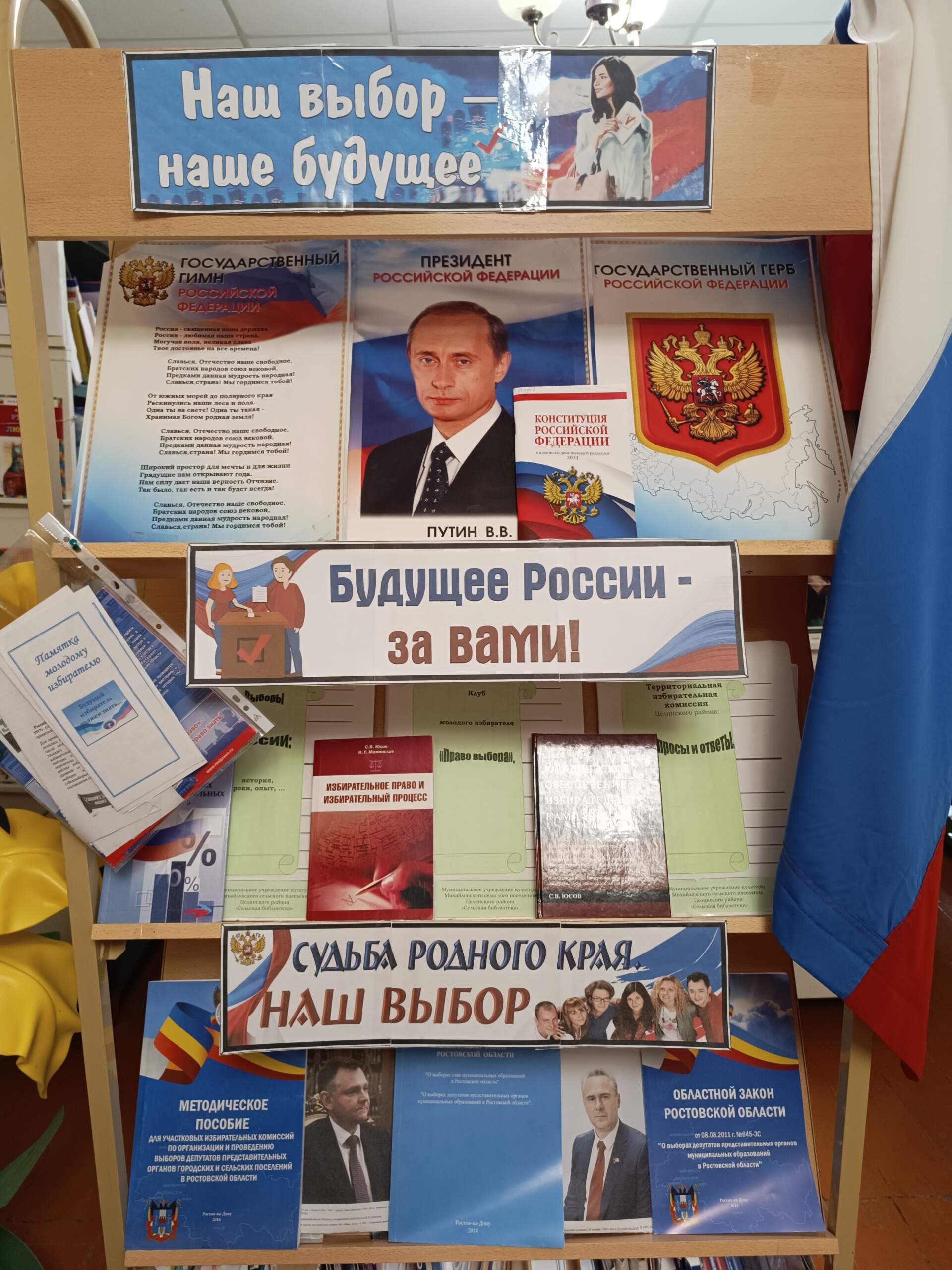 В преддверии Единого дня голосования, когда жители Ростовской области будут выбирать губернатора Ростовской области в СП «Библиотека с. Михайловка» МБУК ЦР МЦБ, оформлена книжная выставка "Наш выбор- наше будущее: выборы-2025" для всех категорий читателей. Рубрики: «Будущее России – за ВАМИ!», «Судьба родного края-НАШ ВЫБОР!».