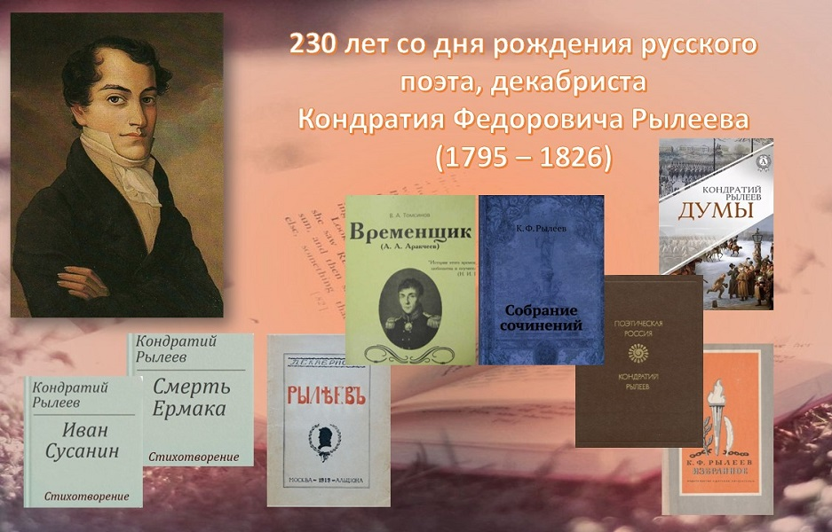 29 сентября исполняется 230 лет со дня рождения К. Ф. Рылеева (1795-1826). Кондратий Фёдорович Рылеев — русский поэт, общественный деятель, декабрист и один из пяти казнённых лидеров Декабристского восстания 1825 года. Кондратий родился 29 сентября 1795 года в селе Батово, близ Санкт-Петербурга, в семье отставного военного. Имя ему дали в честь первого встреченного человека на пути в церковь для крещения младенца, который оказался отставным военным и стал его крёстным. Отец Кондратия был азартным игроком, проигравшим два своих поместья, поэтому он отправил сына в Петербургский кадетский корпус, где тот учился с 1801 по 1814 год.
